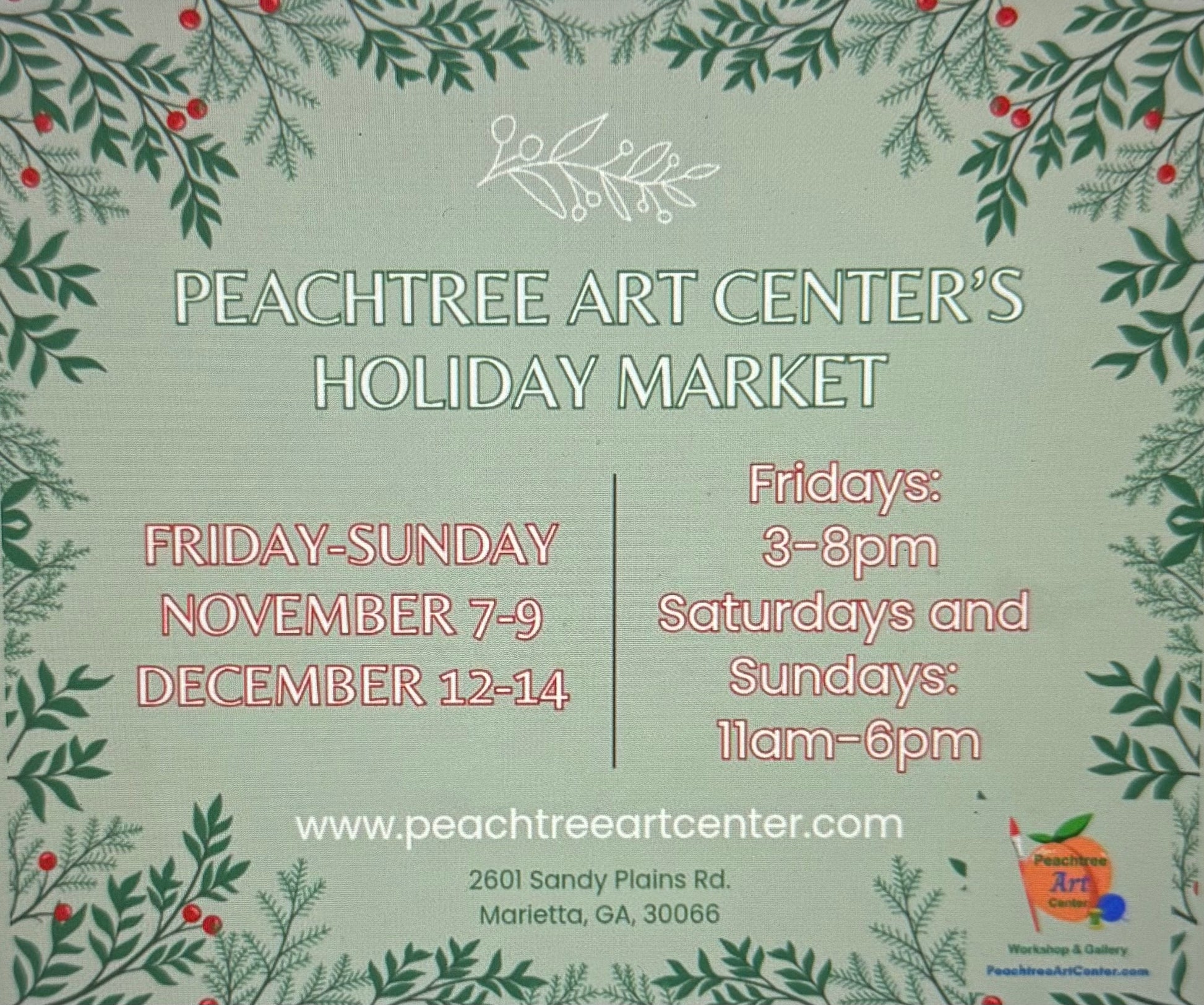 Join us at **Peachtree Art Center’s Holiday Market** for two festive weekends filled with local art, unique gifts, and holiday spirit!